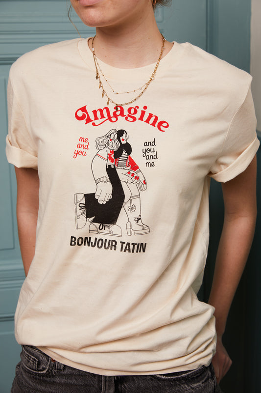 T-shirt Off-white/Rood 'Imagine you and me' BonjourTatin